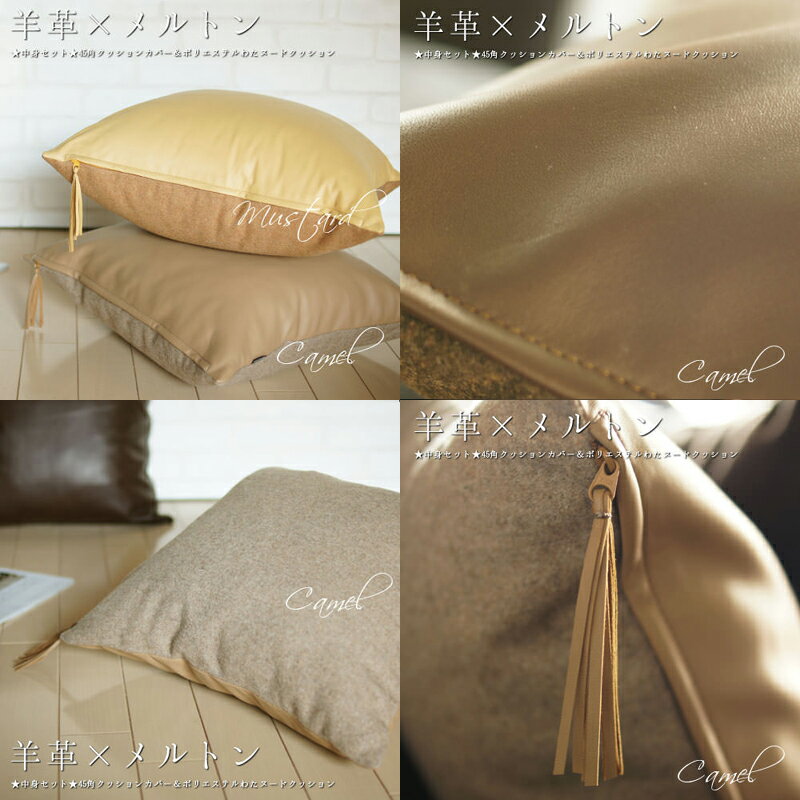 サイズ 45cm×45cm カバー素材 表地/羊革(イタリア産)裏地/メルトン ウール61%ポリエステル29%ナイロン6%アクリル4% ヌードクッション 生地:ポリエステル65%綿35%中材:ポリエステルわた 約400g お洗濯 カバーのお洗濯は出来ません 生産 日本製(made in JAPAN) ブランド fabrizm(ファブリズム) ラッピングについて 大型商品用ラッピング(有料)の対象商品です。
